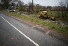 Two small groups of Girl Scouts and their adult chaperones wore bright green safety vests Saturday as they walked along both sides of County Highway P, which they had adopted as a community service project.