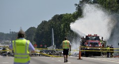 Mark Jones was nearby when he says he saw the plane low in the air. He says "it almost looked like it stalled and just went almost flat right there in the middle of the highway."