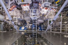 The lasers focus an enormous amount of heat on a small metal can. The result is a superheated plasma environment where fusion may occur.