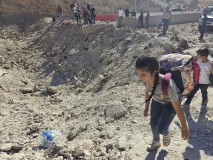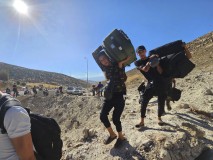 Associated Press video footage showed two huge craters on each side of the road. People got out of cars, unable to pass, carrying bags of their possessions as they crossed on foot. More than 250,000 Syrians and 82,000 Lebanese have fled across the border into Syria during the escalation of the past two weeks. There are a half-dozen crossings between the two countries, and most remain open.