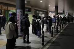 Many people formed long lines outside of major stations while waiting for trains to resume operation late Wednesday, but trains in Tokyo operated normally Thursday morning.