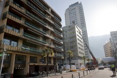 Police and emergency teams erected white tents at the scene, and forensics investigators were spotted on the top balcony of the building.