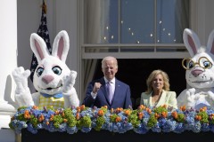 After making an early appearance on the lawn to speak with Roker after the gates opened at 7 a.m., Biden and first lady Jill Biden addressed the crowd from the White House balcony before joining the “egg-citement.” Some 30,000 people, mostly children, were expected, in nine waves of participants, ending at 7 p.m.
