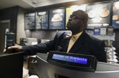 Just before 7:30 a.m., the protesters moved inside and stood in front of the counter, some holding banners reading "End Stop and Frisk," chanting slogans like, "A whole lot of racism, a whole lot of crap, Starbucks coffee is anti-black."