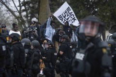 Shortly after the shooting, demonstrators began to gather, with some jumping atop police cars. Marchers also descended on the Brooklyn Center Police Department, where rocks and other objects were thrown at officers, authorities said. The protesters had largely dispersed by 1:15 a.m. Monday.