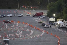 LOS ANGELES (AP) — One of the largest vaccination sites in the country temporarily shut down Saturday because dozen of protesters blocked the entrance, stalling hundreds of motorists who had been waiting in line for hours, the Los Angeles Times reported.