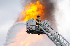 "A lot of the house structures that are adjacent to that are still catching on fire even though we’re putting a lot of water on them,” Mouton said at an afternoon news conference. A spewing flame still lit up the sky at sunset Monday.