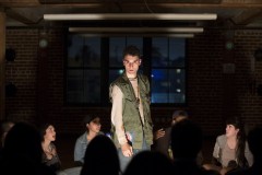 CalArts senior Emilio Garcia-Sanchez, recounts family stories of relatives crossing over and being deported before his grandmother eventually obtained a visa and his family settled in the United States. "Not only is this story of these children important, but it's personal to me too," he said.