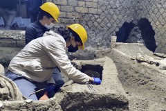 Archaeologists also have uncovered the skeletal remains of two people, believed to have been a wealthy man and his male slave, who were stricken by volcanic ash attempting to escape death.