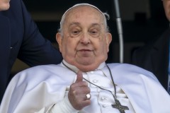 Francis was released Sunday after 38 days of treatment for double pneumonia, under doctors' orders to observe two months of convalescence during which he should avoid large gatherings. The pope appeared weak and frail when he greeted the crowd outside the Gemelli hospital before his discharge.