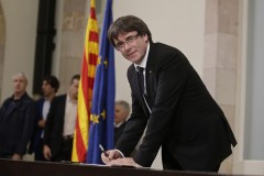 Following his speech, the Catalan leader was the first to sign the document titled "Declaration of the Representatives of Catalonia." Dozens of other separatist lawmakers signed it after him.