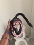 It took the handler — who Lespron calls “my hero” — three tries to get the black and pink coachwhip snake firmly in his grasp. He was able to wrestle the snake with one hand while capturing it all on his cellphone with the other.
