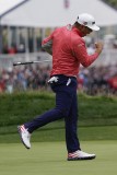 Needing three putts to win, Woodland finished in style. He raised both arms in the air to salute the crowd, turned toward the Pacific and slammed down his fist.