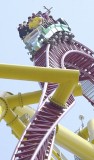 The coaster, which opened in 2003, launches riders on a straight away at 120 mph (193 kph) before it climbs a hill and then comes back down. The ride lasts less than 20 seconds.