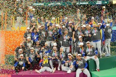 “They were with us here in our hearts,” Venezuela captain Salvador Perez said of his countrymen. “The World Series, as you all know, is one of the most important championships in the major leagues, but when you fight for your country, that goes beyond. That feeling, the country where you were born and raised, the sacrifices made by our parents, those people that helped us, that’s why this means a lot to me and to Venezuela.”