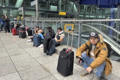 At Heathrow, a family of five traveling to Dallas showed up in the hopes their flight home — still listed as delayed — would take off.