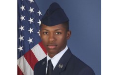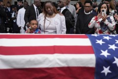 After the service, airmen saluted and Fortson’s mother embraced mourners outside the church as his casket was carried to a horse-drawn carriage draped on the inside with gold curtains. The black horse that pulled the carriage away was adorned with red, white and blue flowers around its mane and silver on its hooves.