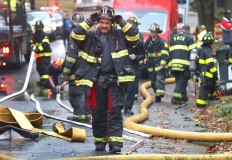 The Cessna 414 crashed through the roof of one home and exploded, causing a fire that set two houses ablaze. The occupants of the house weren't home at the time, and a woman in one of the adjacent homes escaped without injury.
