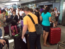 "We've tried all of the self-check-in machines. None were working, apart from one," said Terry Page, booked on a flight to Texas. "There was a huge queue for it and it later transpired that it didn't actually work, but you didn't discover that until you got to the front."