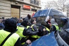 Scattered clashes are continuing around the city as the protesters seek to reach the presidential palace and demand President Emmanuel Macron's resignation. While the situation is tense, police appear to have it more under control than a week ago, when rioting and looting overwhelmed Paris security forces.