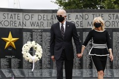 NEW CASTLE, Del. (AP) — Joe Biden made his first in-person appearance in more than two months on Monday as he marked Memorial Day by laying a wreath at a veterans park near his Delaware home.