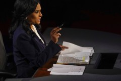 The discussion over race in the country then stretched on for several minutes, with Biden sarcastically seizing on Trump’s fondness for saying he’s done more for African Americans than any president since Abraham Lincoln by referring to Trump as “Abraham Lincoln over here.”