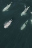 From a 20-foot (about 6-meter) inflatable boat, Brodsky and a small team out searching for Gray whales watched mesmerized as the dolphins jumped out of the bay, peeking around as they leaped in the air. This type of dolphin with its stocky body and bulbous head can weigh as much as 1,100 pounds (about 499 kilograms) and reach up to 13 feet (3.9 meters) long.
