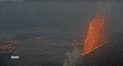 Fountains on the north side are 100 to 120 feet (30 to 40 meters) high and feeding multiple lava streams, the observatory said. A small fountain can be seen in the south side with a small lava flow emerging, the observatory said.