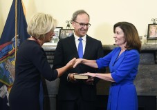 The Democrat from western New York was sworn in as governor in a brief, private ceremony in the New York State Capitol overseen by the state’s chief judge, Janet DiFiore.