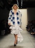 So there was a decent amount of black, toughened up with zippers everywhere — across the cups of a bra, or dangling around the neck. And there were metal rings everywhere, and hanging garters forming a fringe around the bottom of a skirt.