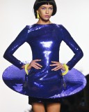 But there was also a lot of bright color, and sparkly sequins, and shimmering party dresses that, in Scott's words, "look like a UFO landed on it." Yes, with bizarre geometric shapes incorporated into the outfit.