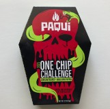 The One Chip Challenge chip sells for about $10 and comes wrapped in a sealed foil pouch that is enclosed in a coffin-shaped cardboard box. The package warns that the chip is made for the “vengeful pleasure of intense heat and pain,” is intended for adults and should be kept out of reach of children.