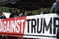 Police erected barricades to stop protesters marching past the gates of Downing St., though the shouts and chants could be heard as Trump met May for talks inside the prime minister's official residence.