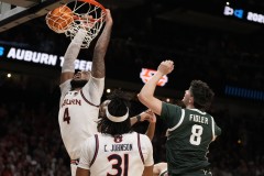 Auburn was the only Elite Eight team to win each of its first three March Madness games by double digits, including its 78-65 Sweet 16 victory over Michigan. Michigan State rallied for a 73-70 win over Mississippi in the Sweet 16.