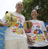 Joey Chestnut, a 30-year-old San Jose, California, man nicknamed Jaws, hopes to put away his competition by downing a record 70 hot dogs in 10 minutes in the raucous event held just steps from the beach. Last year, Chestnut won with 69 franks and buns. Matt Stonie, who was second in 2013 with 51 dogs, returns for another run at the top spot.