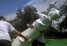 Meanwhile, at the University of Hong Kong, a dozen students laid flower bouquets at the "Pillar of Shame," a sculpture by Danish artist Jens Galschiot commemorating the crackdown's victims.