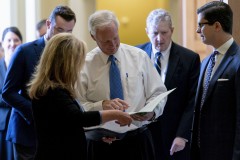 In contrast, every Republican present was opposed as the Senate voted 50-49 to begin considering the budget. Sen. Mike Rounds, R-S.D., missed the roll call to be with his ailing wife.