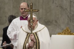 The pontiff presided Sunday over the evening Mass attended by about 6,500 faithful who took their place amid the splendor of St. Peter’s Basilica behind rows of white-clad prelates.