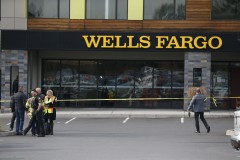 A woman who was killed was a bank customer, Wells Fargo spokesman David Kennedy said. Another woman was critically injured there, and the two people whose cars were stolen had serious injuries, authorities said.