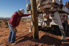 Then a volunteer power crew from Colorado helped install 14 power poles while the tribal utility authority drilled holes six feet deep in which the poles would sit. The crew then ran a wire about a mile down a red sand road from the main power line to the couple's home.