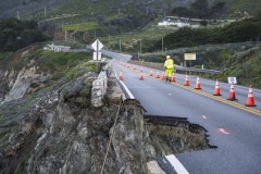 BIG SUR, Calif. (AP) — Motorists crept along one lane of a scenic stretch of California’s iconic Highway 1 on Monday after a giant chunk of it collapsed into the ocean following heavy weekend rains, stranding as many as 1,600 people in the coastal community of Big Sur.