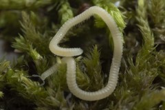 About the length of a paperclip but skinny as pencil lead, it's translucent and sinuous like a jellyfish tentacle. The creature burrows four inches below ground, secretes unusual chemicals and is blind, relying on hornlike antennas protruding from its head to find its way.