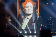 A Mark Twain impersonator then emerged from the audience. After a back-and-forth debate with O'Brien, he joined him on stage and the pair slow danced for a while. They were then joined by a dozen more Twain impersonators and previous Twain Prize recipient Adam Sandler for a raucous rendition of Neil Young’s “Rockin in the Free World.”