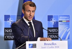 "President Trump never at any moment, either in public or in private, threatened to withdraw from NATO," Macron told reporters.