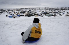 Dani Jo McKing, a member of the Standing Rock Sioux, was among those in line. She and her husband have been sharing cold-weather tips with people who are not from North Dakota. She said people with out-of-state license plates, including California and Nevada, have been seen driving away from the camp. The cruel winter is bound to induce others to head home, she said.