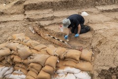 KIBBUTZ REVADIM, Israel (AP) — Israeli archaeologists recently unearthed the titanic tusk of a prehistoric elephant near a kibbutz in southern Israel, a remnant of a behemoth once hunted by early people around half a million years ago.