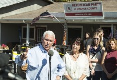 Pence's visit to the state comes two days after a local Republican Party office in Orange County, North Carolina, was damaged by a Molotov cocktail thrown through a window. No one was in the office at the time. Local Republicans resumed operations Monday outside their damaged office.