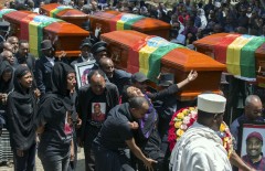 Earlier Sunday, thousands in the capital of Addis Ababa mourned the country's victims in the crash, accompanying 17 empty caskets draped in the national flag through the streets of the capital. Some victims' relatives fainted and fell to the ground.