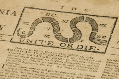Bob Snyder of the New York auction house Cohasco says the "rebel" newspaper shows how "everyone was good and mad" at the British just months before the Revolutionary War began. The masthead design is a variant of the "Join, or Die" political cartoon credited to Benjamin Franklin.