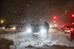 Up to 30 centimeters (12 inches) of snow fell, trapping the customers and employees when the department store in Aalborg closed on Wednesday evening.
